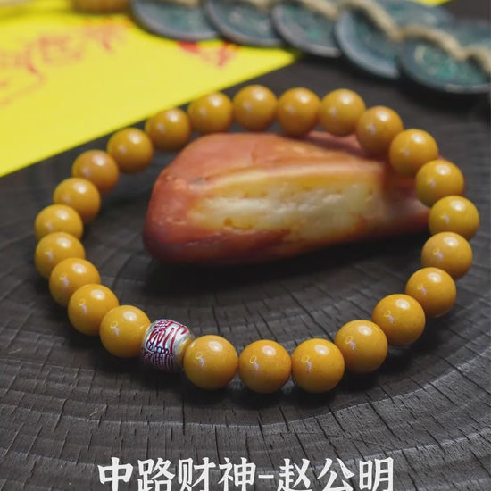 這不只是一串手串,更是隨身攜帶的能量磁場。我們將稀缺的天然河磨玉黃沁道教中路財神趙公明的法力結合,專為追求事業順遂、渴望財富積累的您打造。