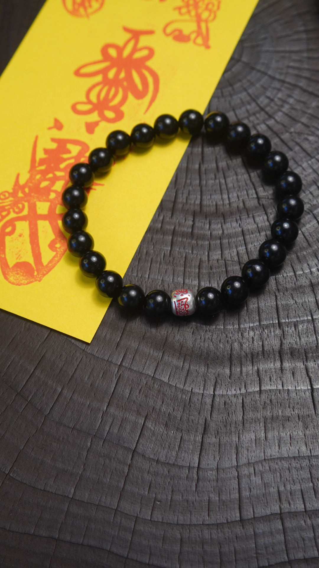 純陽硃砂:硃砂為極陽之物,封於銀珠之中,既能以此「火」氣催動財運,又能配合墨玉形成「水火既濟」的平衡格局,護佑佩戴者出入平安。